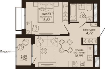 Общая площадь41,3 м²