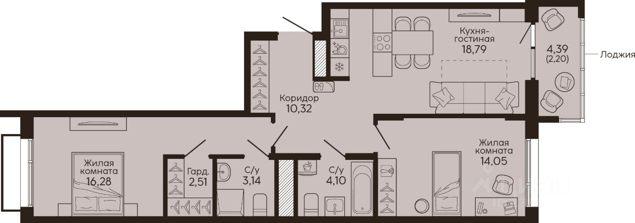 Общая площадь71,39 м²
