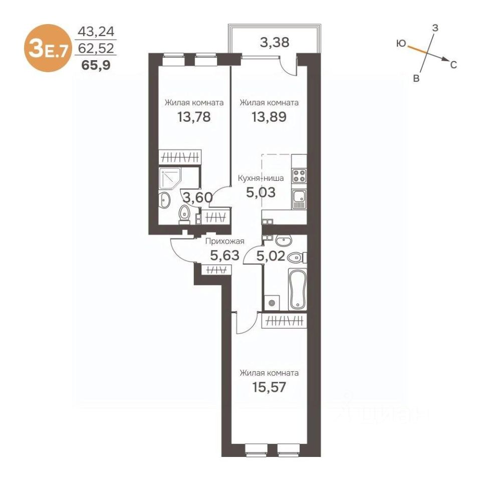 Общая площадь64,21 м²