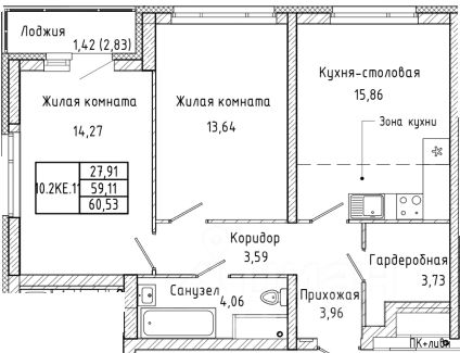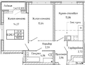 Общая площадь60,53 м²