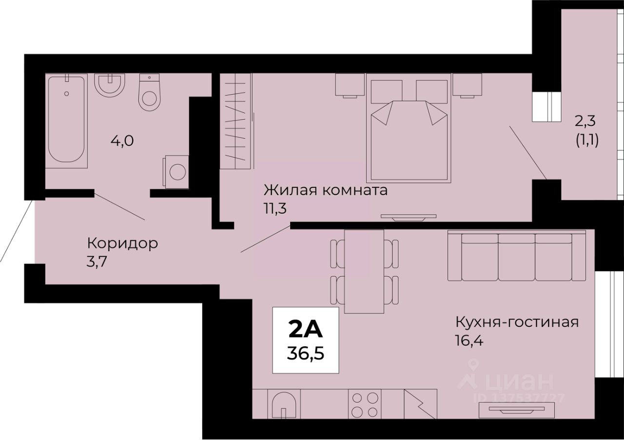 36,5 м²