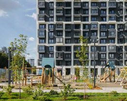 Проект включает шесть домов и многоуровневый паркинг. На первых этажах открываются кафе, магазины и полезные сервисы. А в уютных дворах-парках есть детские и спортивные площадки.