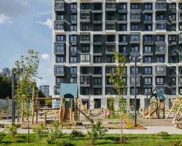 Проект включает шесть домов и многоуровневый паркинг. На первых этажах открываются кафе, магазины и полезные сервисы. А в уютных дворах-парках есть детские и спортивные площадки.