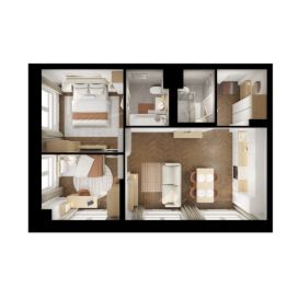 В микрорайон входит десять жилых корпусов, собственный детский сад для 236 малышей и многоуровневые надземные паркинги на 848 мест. На первых этажах домов откроются кафе, магазины и другие сервисы. Застройка разной высоты даёт ощущение свободного пространства и пропускает много естественного света в квартиры и во дворы.
