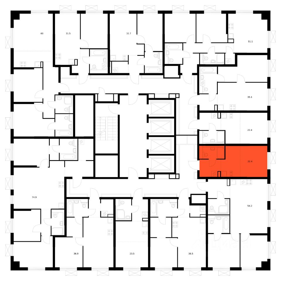 Продаётся квартира-студия площадью 22,4 кв.м на 19 этаже 29 этажного дома (Корпус 6, Секция 1) проекта ПИК Утёс. Светлый просторный подъезд на уровне земли, функциональная планировка, большие окна, предчистовая отделка.