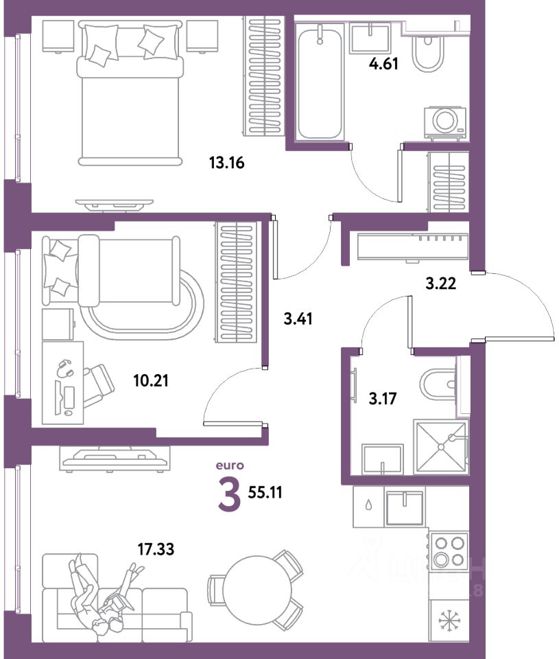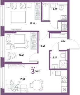 Продаётся 3-комнатная квартира в строящемся доме (Дом 3), срок сдачи: IV-кв. 2028, общей площадью 55.11 кв.м., на 16 этаже. Новый жилой комплекс "Уральский сад" от застройщика "ГК Страна Девелопмент" расположен по адресу: г. Екатеринбург, посёлок Совхозный, Комбинатская улица.