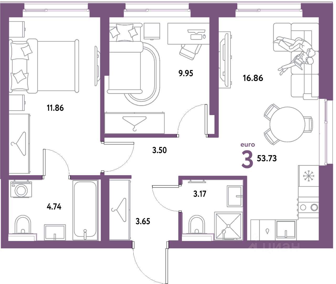 Продаётся 3-комнатная квартира в строящемся доме (Дом 3), срок сдачи: IV-кв. 2028, общей площадью 53.73 кв.м., на 11 этаже. Новый жилой комплекс "Уральский сад" от застройщика "ГК Страна Девелопмент" расположен по адресу: г. Екатеринбург, посёлок Совхозный, Комбинатская улица.
