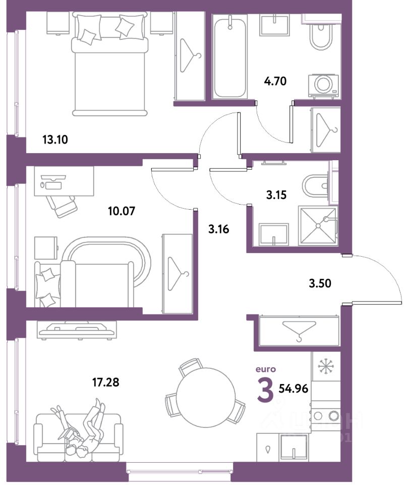 Продаётся 3-комнатная квартира в строящемся доме (Дом 3), срок сдачи: IV-кв. 2028, общей площадью 54.96 кв.м., на 14 этаже. Новый жилой комплекс "Уральский сад" от застройщика "ГК Страна Девелопмент" расположен по адресу: г. Екатеринбург, посёлок Совхозный, Комбинатская улица.