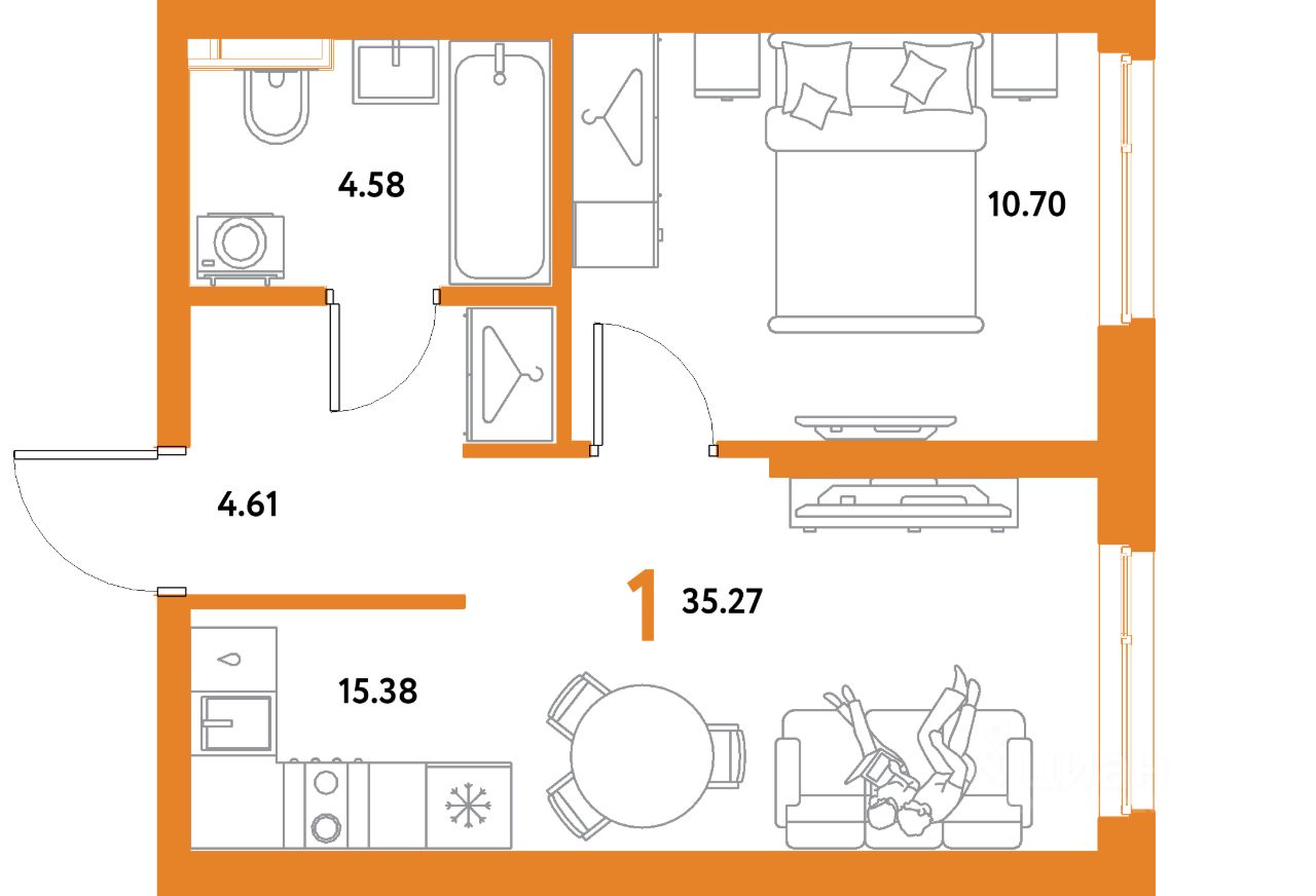 Продаётся 1-комнатная квартира в строящемся доме (Дом 3), срок сдачи: IV-кв. 2028, общей площадью 35.27 кв.м., на 10 этаже. Новый жилой комплекс "Уральский сад" от застройщика "ГК Страна Девелопмент" расположен по адресу: г. Екатеринбург, посёлок Совхозный, Комбинатская улица.