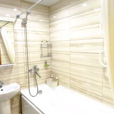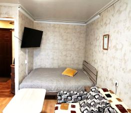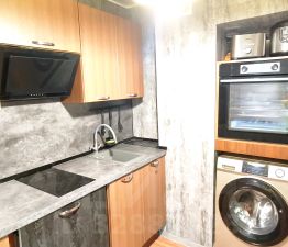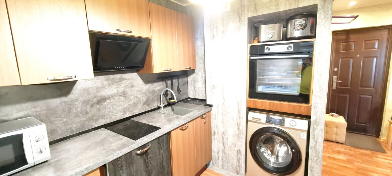 В квартире сделан качественный евроремонт, есть современная мебель и вся необходимая техника для комфортного проживания. Планировка включает одну комнату и совмещенный санузел. Также есть утеплённая лоджия с тёплым полом, где можно организовать зону отдыха или хранение. В квартире всегда тихо, соседи не беспокоят, горячая вода подаётся из скважины через котельную бывшей фабрики Авангард (буквально голубого цвета).