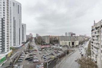 Площадь увеличена за счёт присоединения лоджии и на кухне, и в комнате. Перепланировка узаконена! Панорамные окна входят в общую площадь (это не балкон). Вид из окон — на открытую местность.