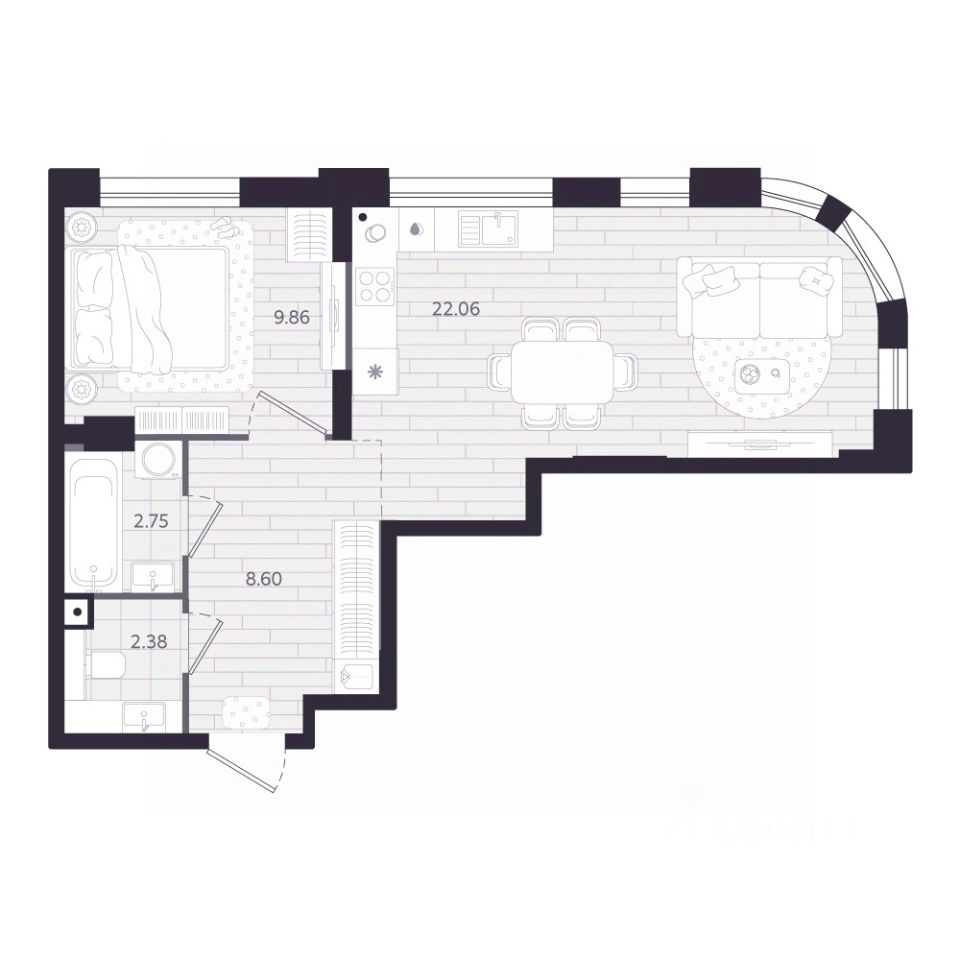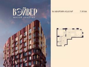 Открыты продажи 1-комнатной квартиры в Жилом квартале Вэйвер от Девелоперской компании Люди, общей площадью 45.65 кв.м., на 7 этаже, по адресу: г. Екатеринбург, улица Восточная. Срок сдачи: IV квартал 2027 года.