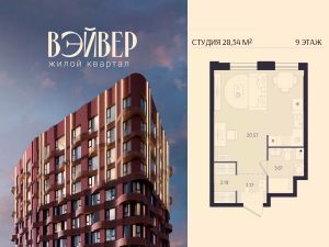 Открыты продажи квартиры-студии в Жилом квартале Вэйвер от Девелоперской компании Люди, общей площадью 28.54 кв.м., на 9 этаже, по адресу: г. Екатеринбург, улица Восточная. Срок сдачи: IV квартал 2027 года.