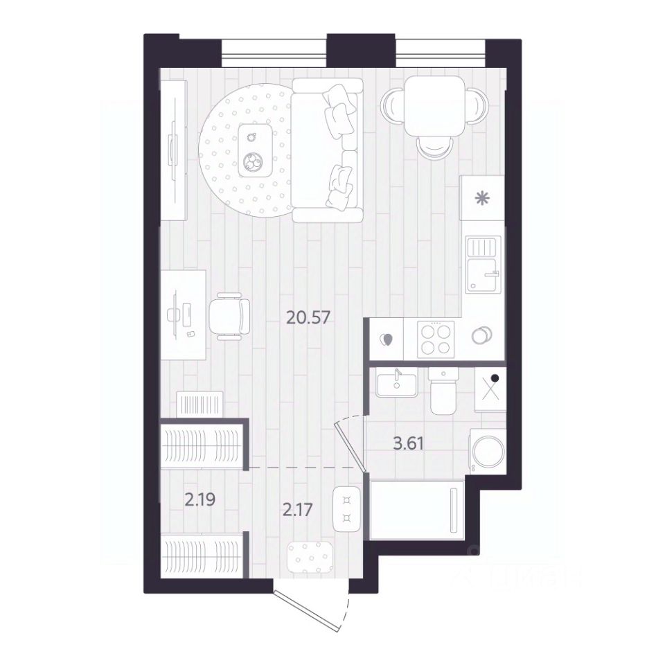 - студии от 26 до 31 кв.м.