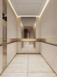 Внутренний интерьер лобби продуман до мелочей: консьерж-сервис, переговорная, колясочная с поручнями для крепления самокатов и душевым поддоном для мойки. Гости могут разместиться в комфортной зоне ожидания с кофе и биокамином.