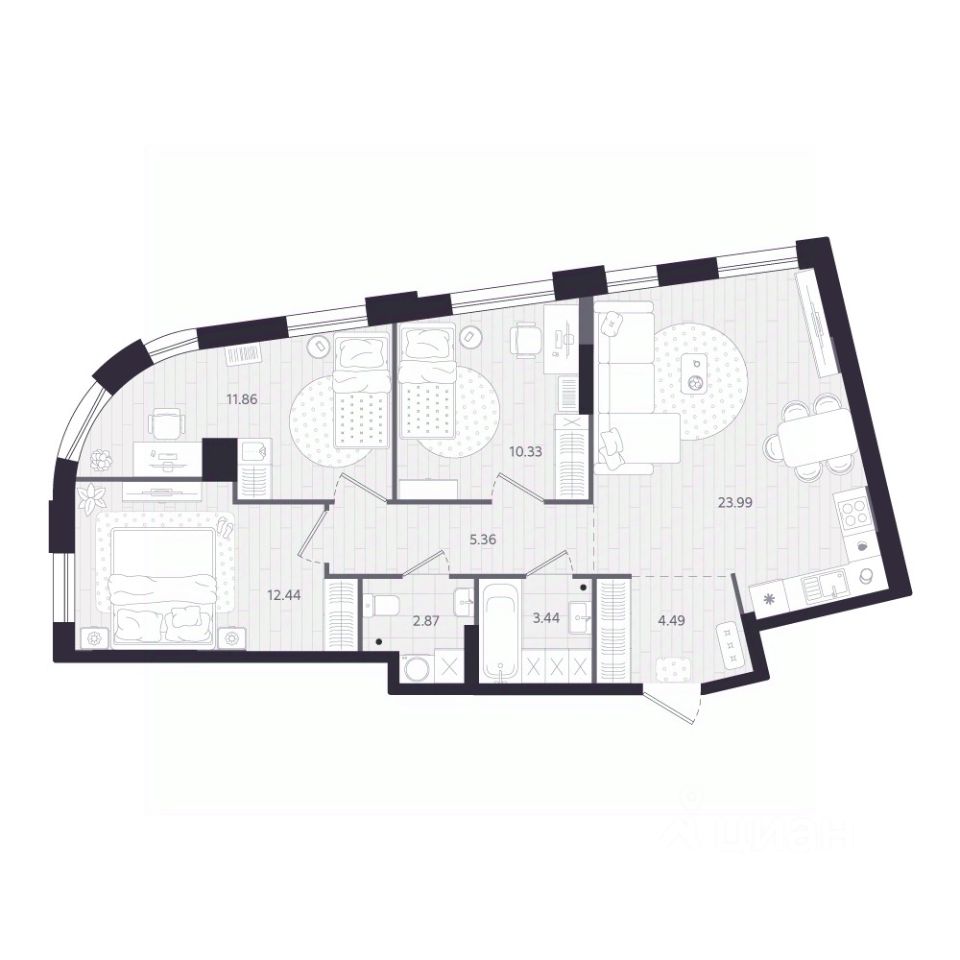 Открыты продажи 3-комнатной квартиры в Жилом квартале Вэйвер от Девелоперской компании Люди, общей площадью 74.78 кв.м., на 9 этаже, по адресу: г. Екатеринбург, улица Восточная. Срок сдачи: IV квартал 2027 года.