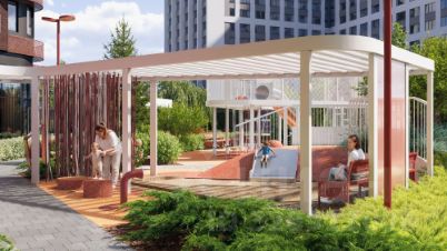 На территории девелопер спроектировал закрытый двор с площадками для отдыха и террасой для резидентов дома на 2 этаже. Для занятий спортом будут организованы зоны для воркаута и настольного тенниса. Для детей несколько игровых пространств.