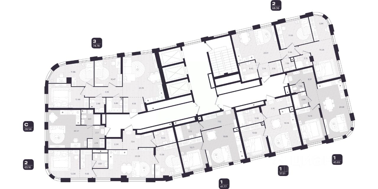 В доме представлено 272 квартиры, от 2 до 9 на этаже, с предчистовой отделкой. Девелопер предлагает более 30 вариантов планировок с гардеробными, просторными санузлами и окнами на 2 стороны.