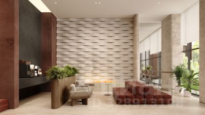 Внутренний интерьер лобби продуман до мелочей: консьерж-сервис, переговорная, колясочная с поручнями для крепления самокатов и душевым поддоном для мойки. Гости могут разместиться в комфортной зоне ожидания с кофе и биокамином.