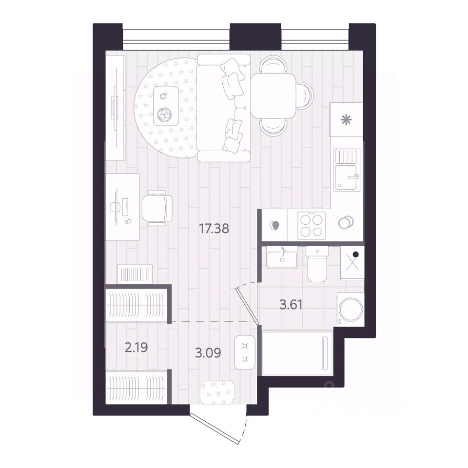 - студии от 26 до 31 кв.м.