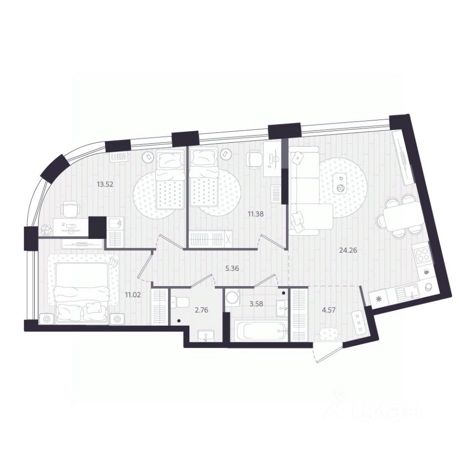 Открыты продажи 3-комнатной квартиры в Жилом квартале Вэйвер от Девелоперской компании Люди, общей площадью 76.45 кв.м., на 20 этаже, по адресу: г. Екатеринбург, улица Восточная. Срок сдачи: IV квартал 2027 года.