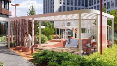 На территории девелопер спроектировал закрытый двор с площадками для отдыха и террасой для резидентов дома на 2 этаже. Для занятий спортом будут организованы зоны для воркаута и настольного тенниса. Для детей несколько игровых пространств.