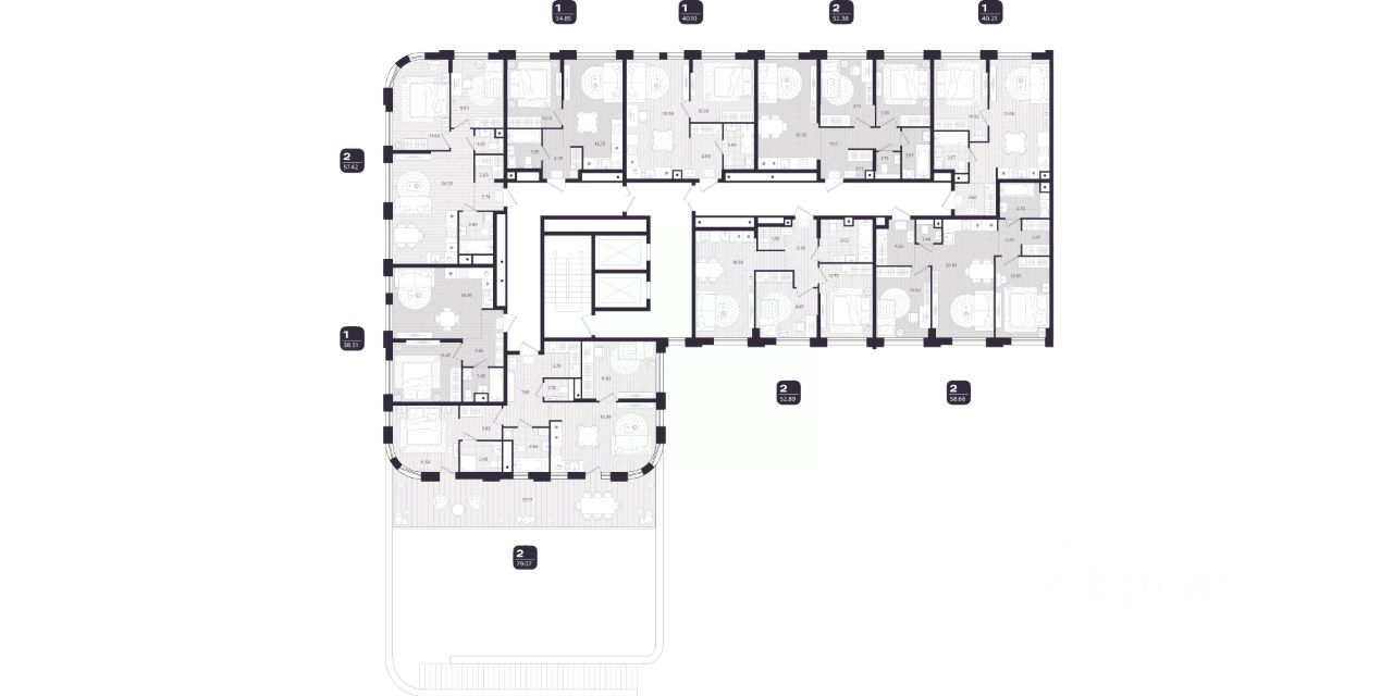 В доме представлено 272 квартиры, от 2 до 9 на этаже, с предчистовой отделкой. Девелопер предлагает более 30 вариантов планировок с гардеробными, просторными санузлами и окнами на 2 стороны.