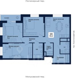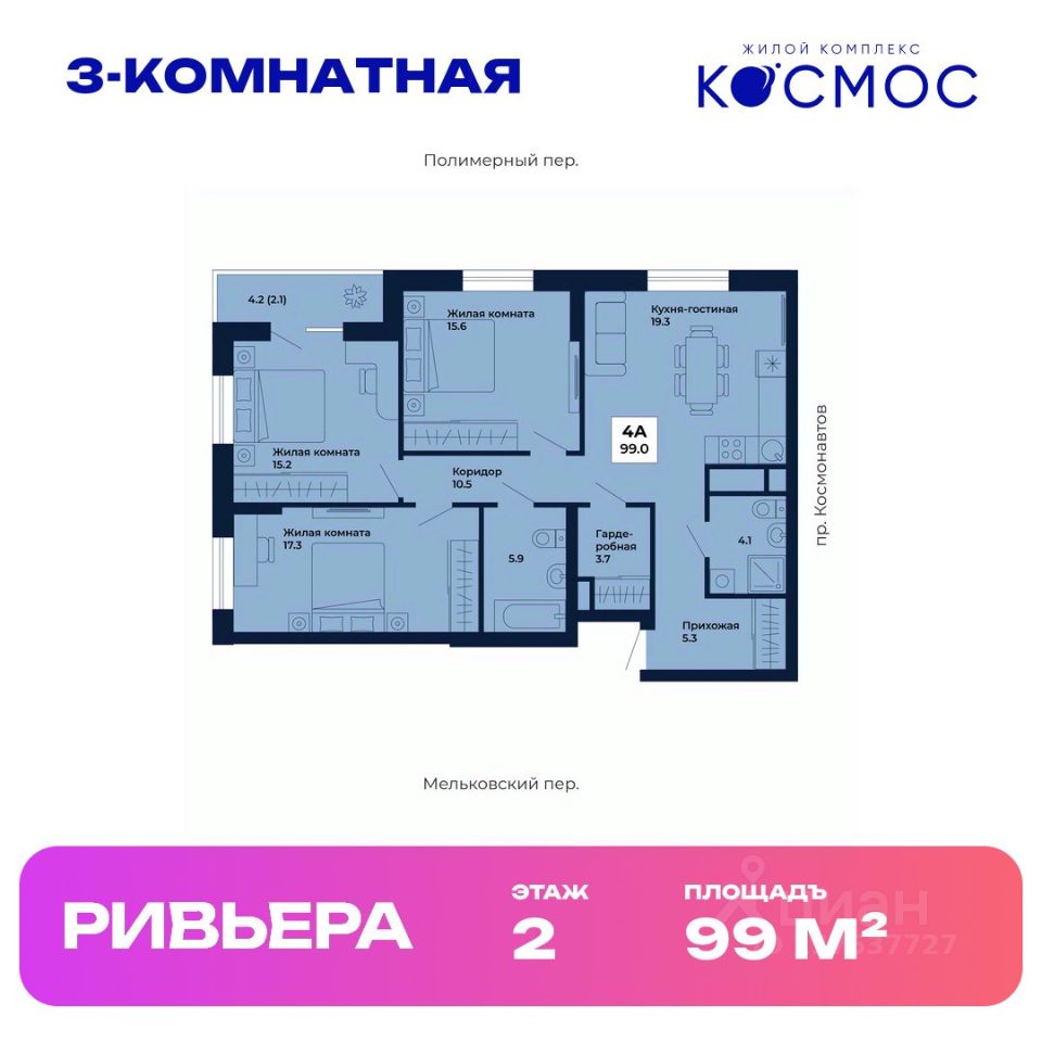 Общая площадь квартиры — 99 кв. м, этаж 2 из 31.