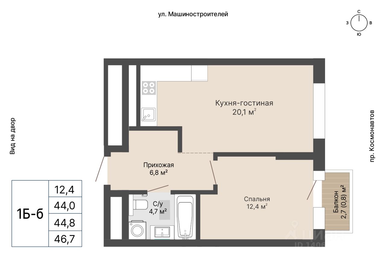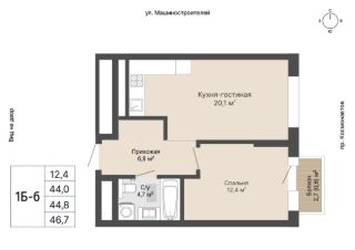 Общая площадь44,8 м²