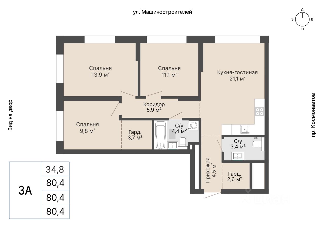 Общая площадь80,4 м²