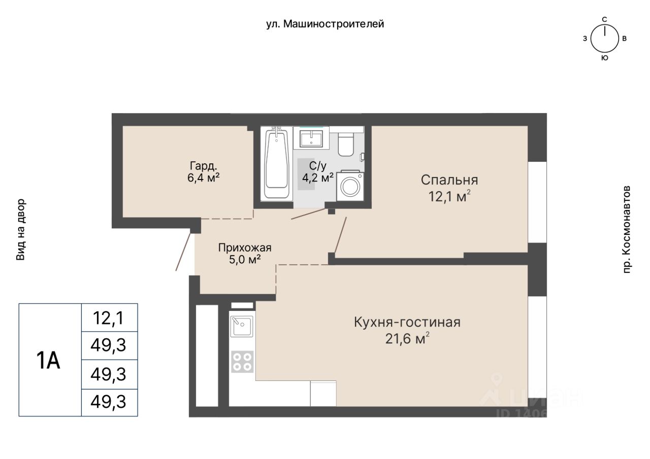 Общая площадь49,3 м²