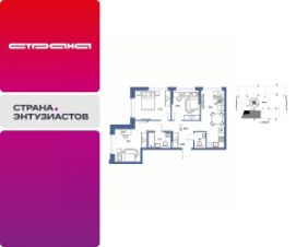 Продается 4комнатная квартира на 5 этаже от застройщика Страна Девелопмент. Площадь квартиры 69,81 кв. м.