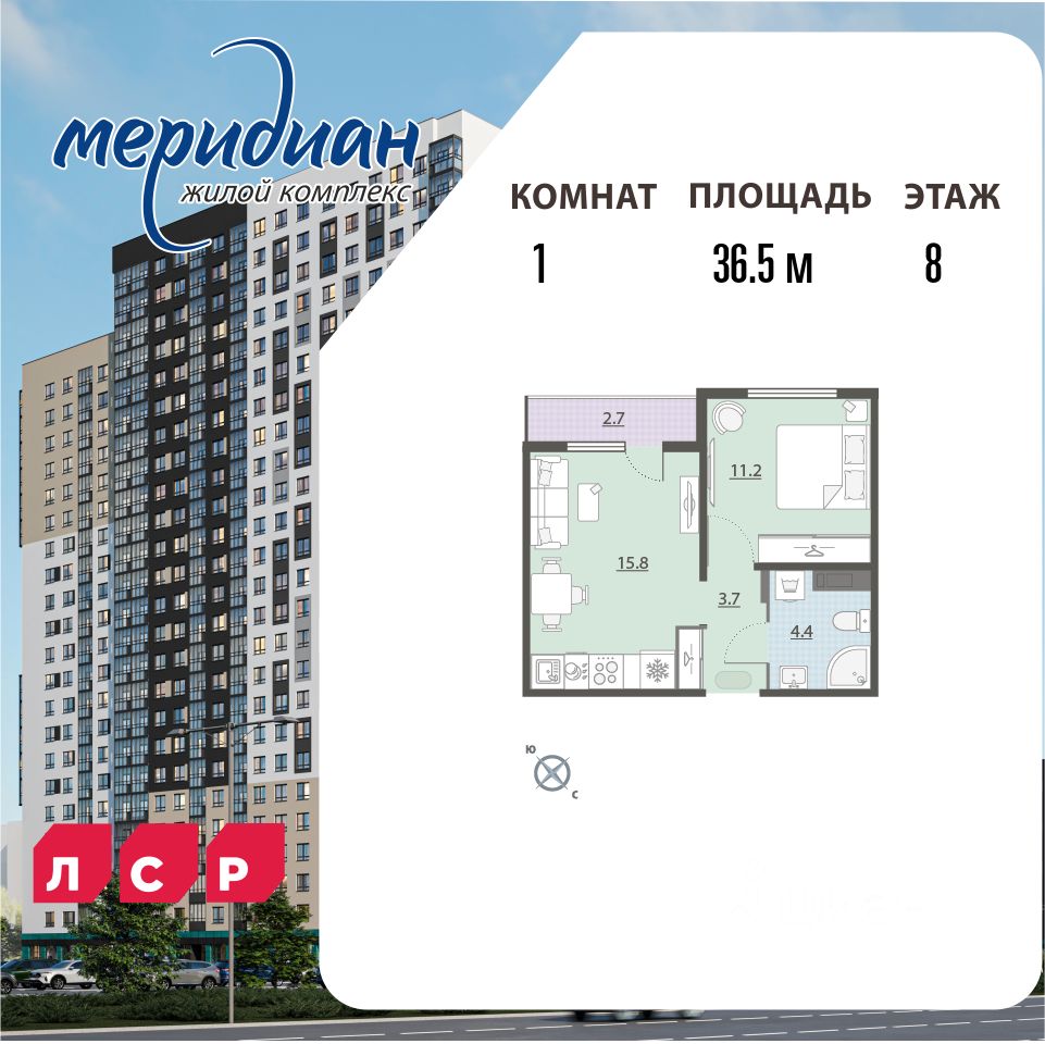 Квартира располагается на 8 этаже 25-этажного дома в ЖК Меридиан.