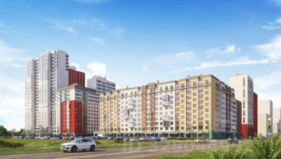 В состав жилого квартала "Меридиан" входит шестнадцать панельных домов высотой от 8 до 25 этажей с разноцветными фасадами, а также здание образовательного центра.