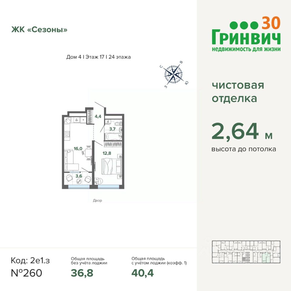 Продаётся 1-комнатная квартира в сданном доме (Щербакова, 82 (Дом 4)), срок сдачи: I-кв. 2026, общей площадью 40.4 кв.м., на 17 этаже. Квартира от застройщика