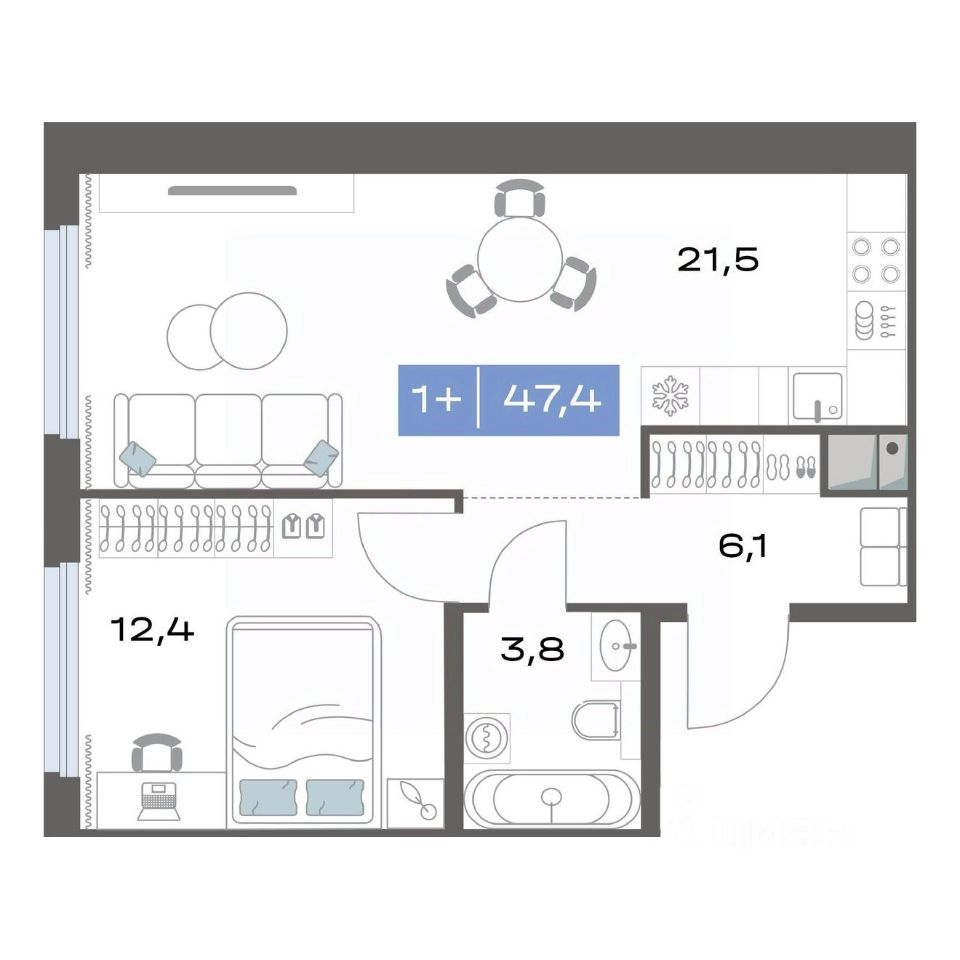 Продаётся 1-комнатная квартира в строящемся доме (Корпус 1.4), срок сдачи: III-кв. 2026, общей площадью 47.4 кв.м., на 2 этаже. Новый жилой комплекс "Толк Академический" от застройщика "СЗ Капитан" расположен по адресу: г. Екатеринбург, улица Академика Парина.