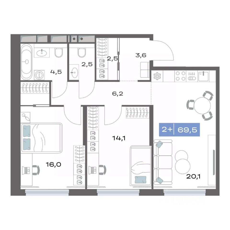 Продаётся 2-комнатная квартира в строящемся доме (Корпус 1.3), срок сдачи: III-кв. 2026, общей площадью 69.5 кв.м., на 4 этаже. Новый жилой комплекс "Толк Академический" от застройщика "СЗ Капитан" расположен по адресу: г. Екатеринбург, улица Академика Парина.