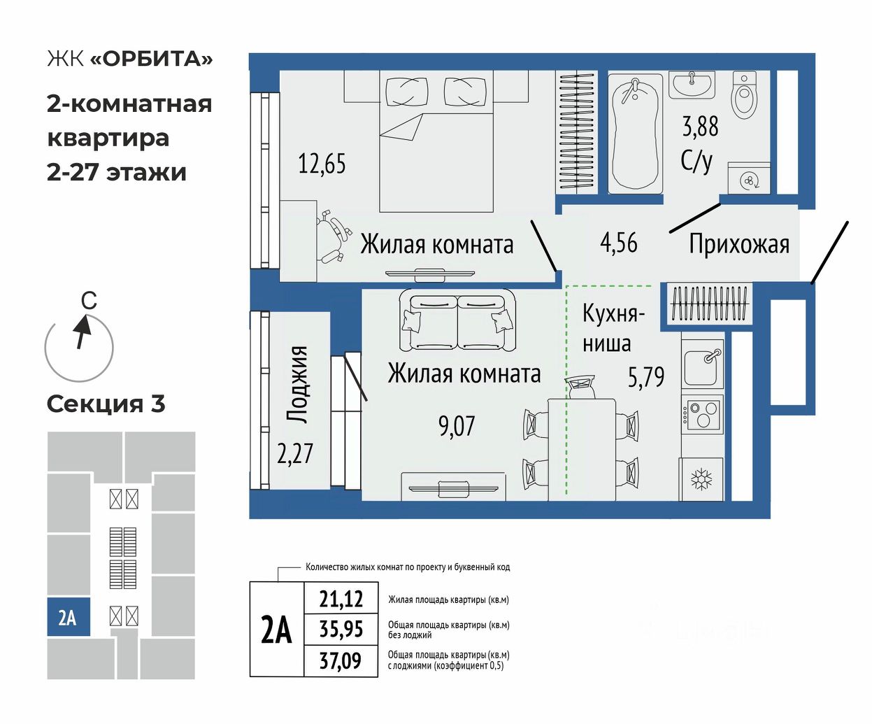 Общая площадь37,09 м²