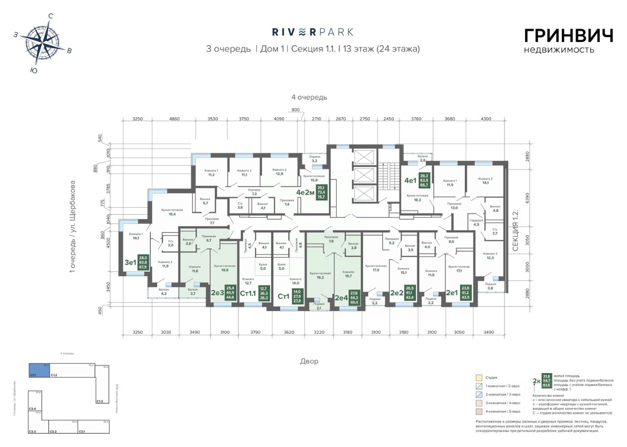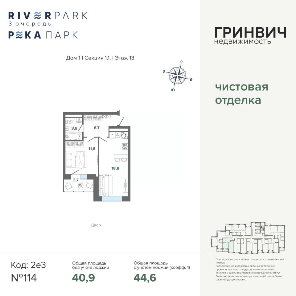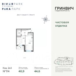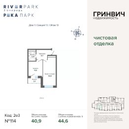 Продаётся 1-комнатная квартира в строящемся доме (3 очередь, Дом 2), срок сдачи: IV-кв. 2026, общей площадью 44.59 кв.м., на 13 этаже. Жилой комплекс "River Park" - новый квартал комфорт-класса с уникальной рекреационной инфраструктурой, собственной набережной, пляжем и парком, расположенный на улице Щербакова, в районе Уктуса, на территории Нижнеисетского пруда.