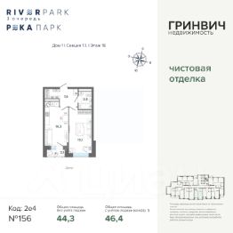 Продаётся 1-комнатная квартира в строящемся доме (3 очередь, Дом 2), срок сдачи: IV-кв. 2026, общей площадью 46.35 кв.м., на 18 этаже. Жилой комплекс "River Park" - новый квартал комфорт-класса с уникальной рекреационной инфраструктурой, собственной набережной, пляжем и парком, расположенный на улице Щербакова, в районе Уктуса, на территории Нижнеисетского пруда.