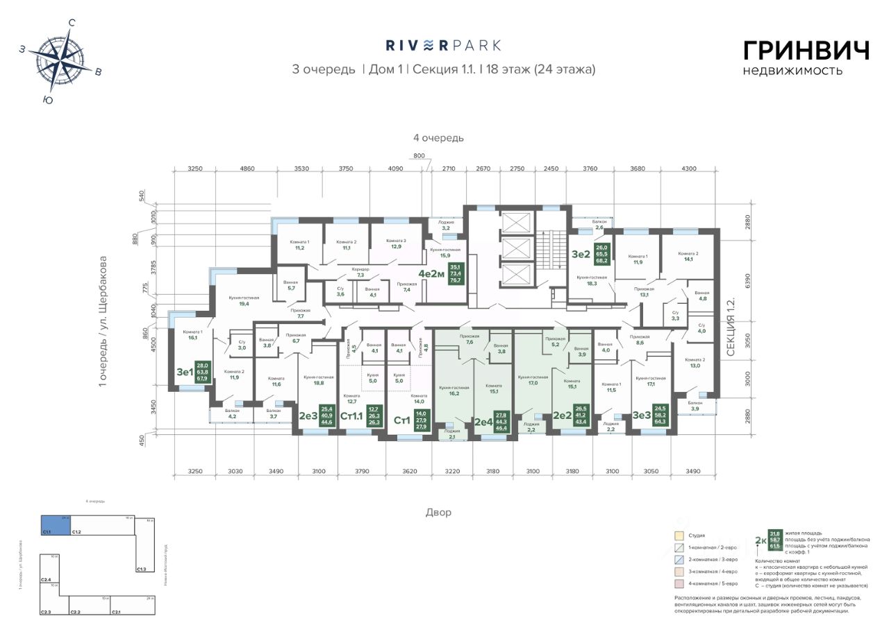 - Эргономичные планировки с зонированием на хозяйскую и гостевую зоны, нишами под бытовую технику, гардеробную. Потолки 2,7 м и большие окна: много света и воздуха.