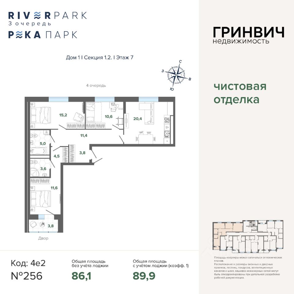 Продаётся 3-комнатная квартира в строящемся доме (3 очередь, Дом 2), срок сдачи: IV-кв. 2026, общей площадью 89.93 кв.м., на 7 этаже. Жилой комплекс "River Park" - новый квартал комфорт-класса с уникальной рекреационной инфраструктурой, собственной набережной, пляжем и парком, расположенный на улице Щербакова, в районе Уктуса, на территории Нижнеисетского пруда.