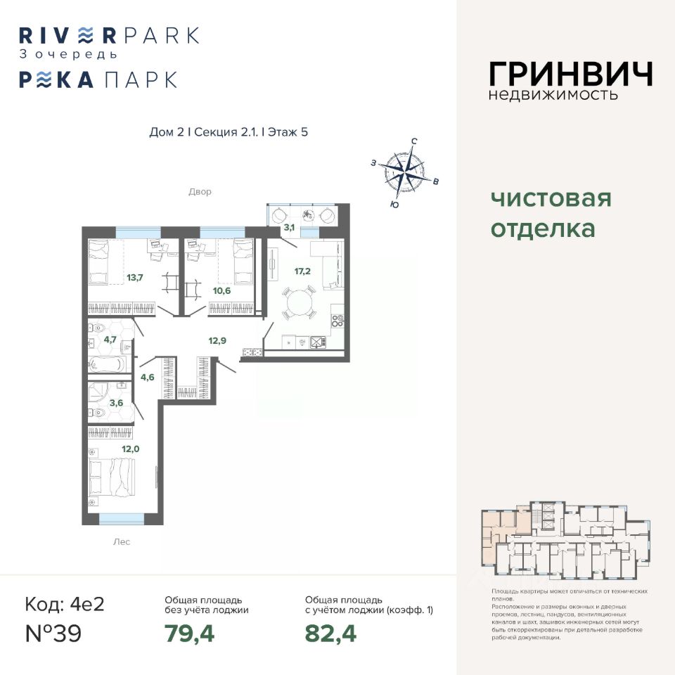 Продаётся 3-комнатная квартира в строящемся доме (3 очередь, Дом 1), срок сдачи: III-кв. 2026, общей площадью 82.45 кв.м., на 5 этаже. Жилой комплекс "River Park" - новый квартал комфорт-класса с уникальной рекреационной инфраструктурой, собственной набережной, пляжем и парком, расположенный на улице Щербакова, в районе Уктуса, на территории Нижнеисетского пруда.