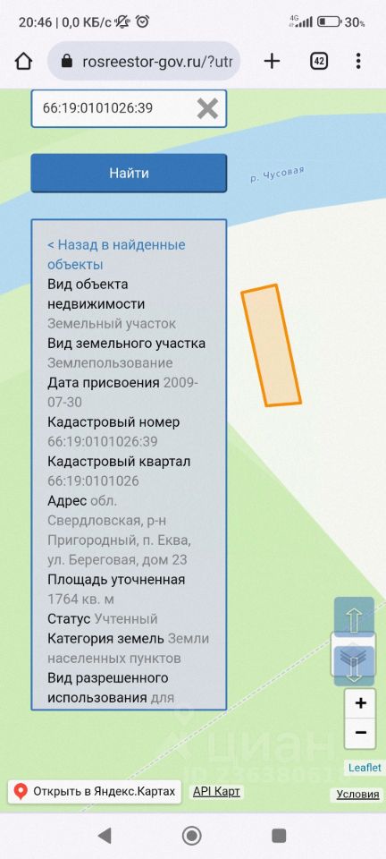 Продаётся земельный участок на берегу реки Чусовая, в посёлке Ёква.
