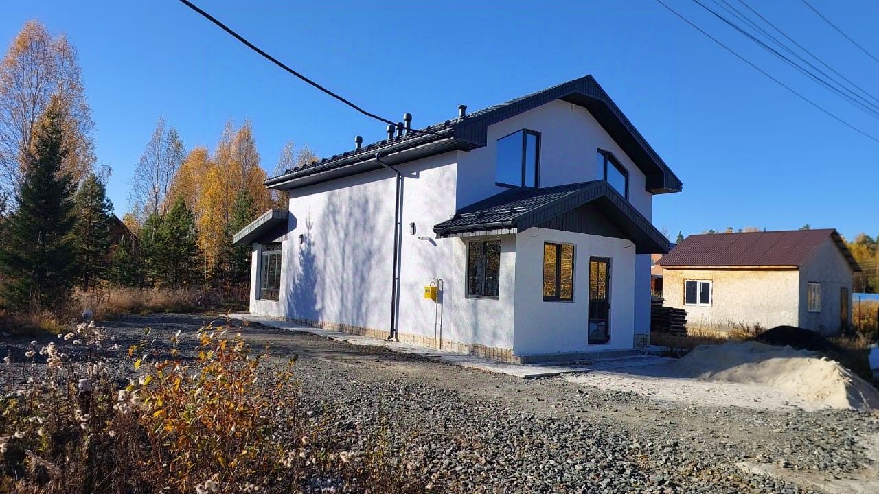 * Отделка: Внешняя отделка штукатуркой "Короед" с покраской, придающая дому элегантный и современный вид.