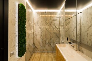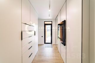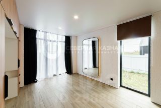 Современный минимализм в интерьере. Террасы вокруг дома с выходом из каждой комнаты. Панорамные окна и огромные зеркала стирают границы. Высокие дверные проемы и линейное освещение отдельных зон подчеркивают высоту помещений и создают эффект "парящего" потолка. Гостиная с декоративным панно станет центром встреч вашей семьи. Реечные фасады и вставки из дерева придают интерьеру натуральность и теплоту. Лаконичные формы, с сохранением функциональности, создают легкость в интерьере. Открытые светлые пространства, комфорт и удобство эксплуатации будут актуальны долгие годы.