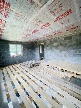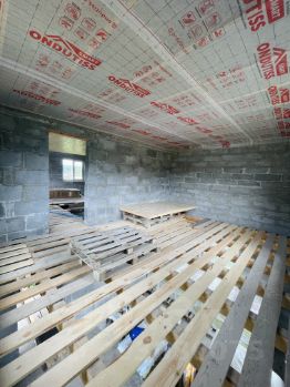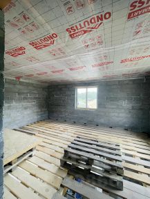 - Кровля 4-х скатная, отсечена от помещения 2 этажа перекрытием из бруса и минераловатным утеплителем 150мм, зашита из нутри ОСБ - 9мм, кровля отличного качества с завода УЗКМ (цвет графит);