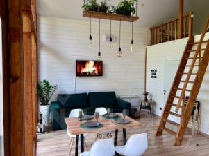В доме две спальных комнаты - одна закрытая, вторая-открытая на мансарде. Объединенная гостиная с кухонной зоной. В доме есть туалет, душ, горячая вода, также кондиционер.