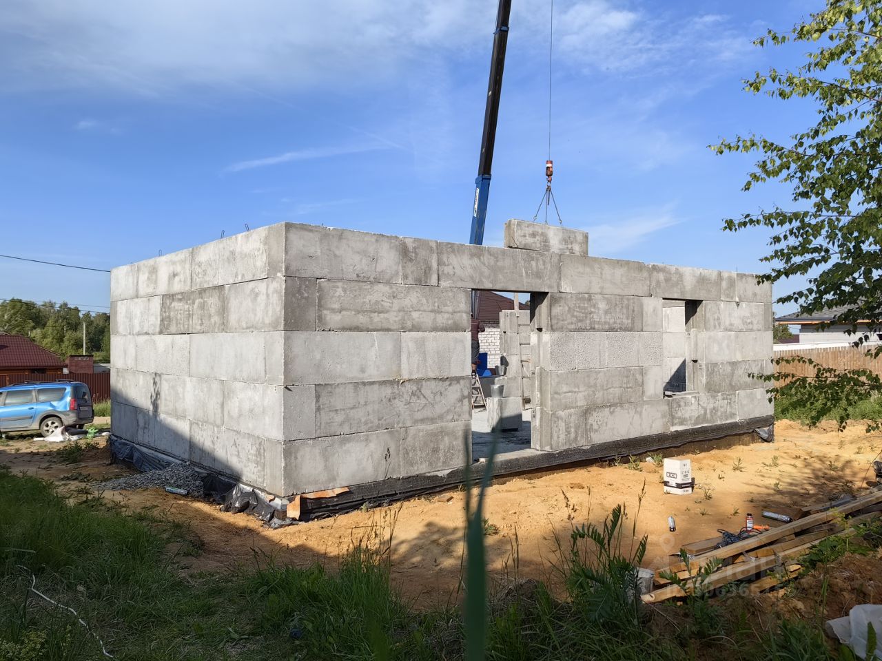 Внутренние стены из заводского блока, под ними собственный ленточный фундамент.