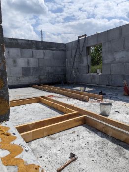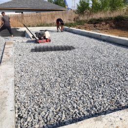 Подготовлена подушка под обустройство теплых полов: отсыпка камнем, обвязка стальной сеткой, заливка бетоном М350.